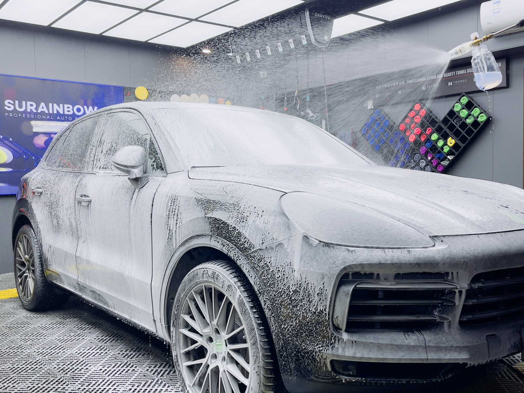 4. Wheel and Tire cleaning: The wheels and tires are a separate focus. Wheel cleaners and iron removers are used to get rid of brake dust and road grime. Special curved brushes make sure that all the hard-to-reach spaces get cleaned too.