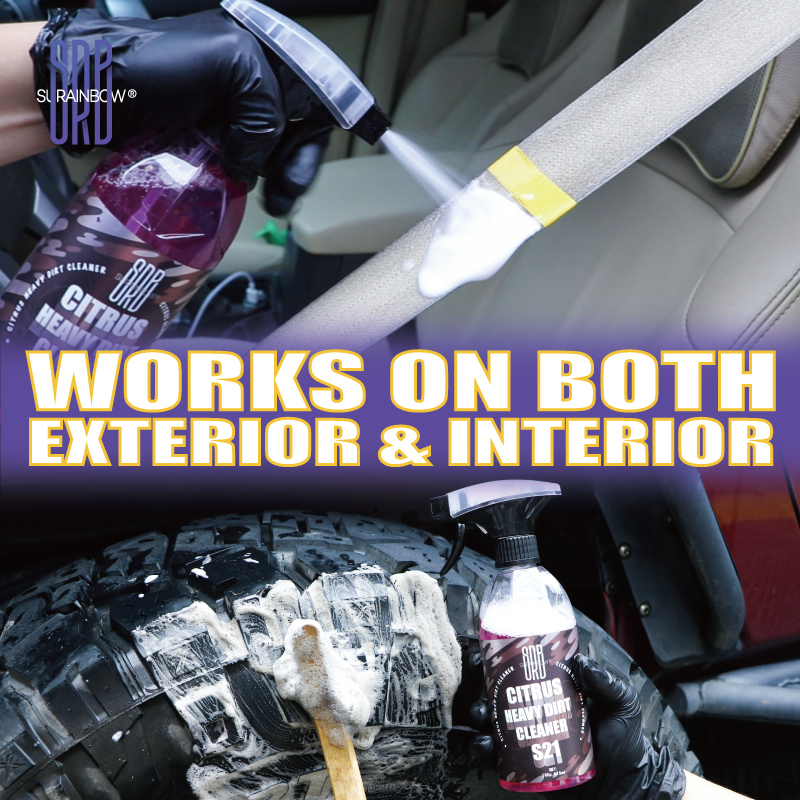 Citrus heavy-dirt cleaner is a multi-functional car cleaner that uses the high-tech lemon and citrus-based cleaning formula extracted from natural plant oils, and a variety of surfactants, which are compounded to be a strong cleaner that cuts through all levels of dirt, grease, and grime but safe to plastics. It’s an ideal option for cleaning leather fabric plastic parts, like leather seat, fabric roof, seat belts and carpet, also has great result for cleaning white car paint dirt and engine oil stains. It’s the most effective and safest cleaner for removing oil stains.